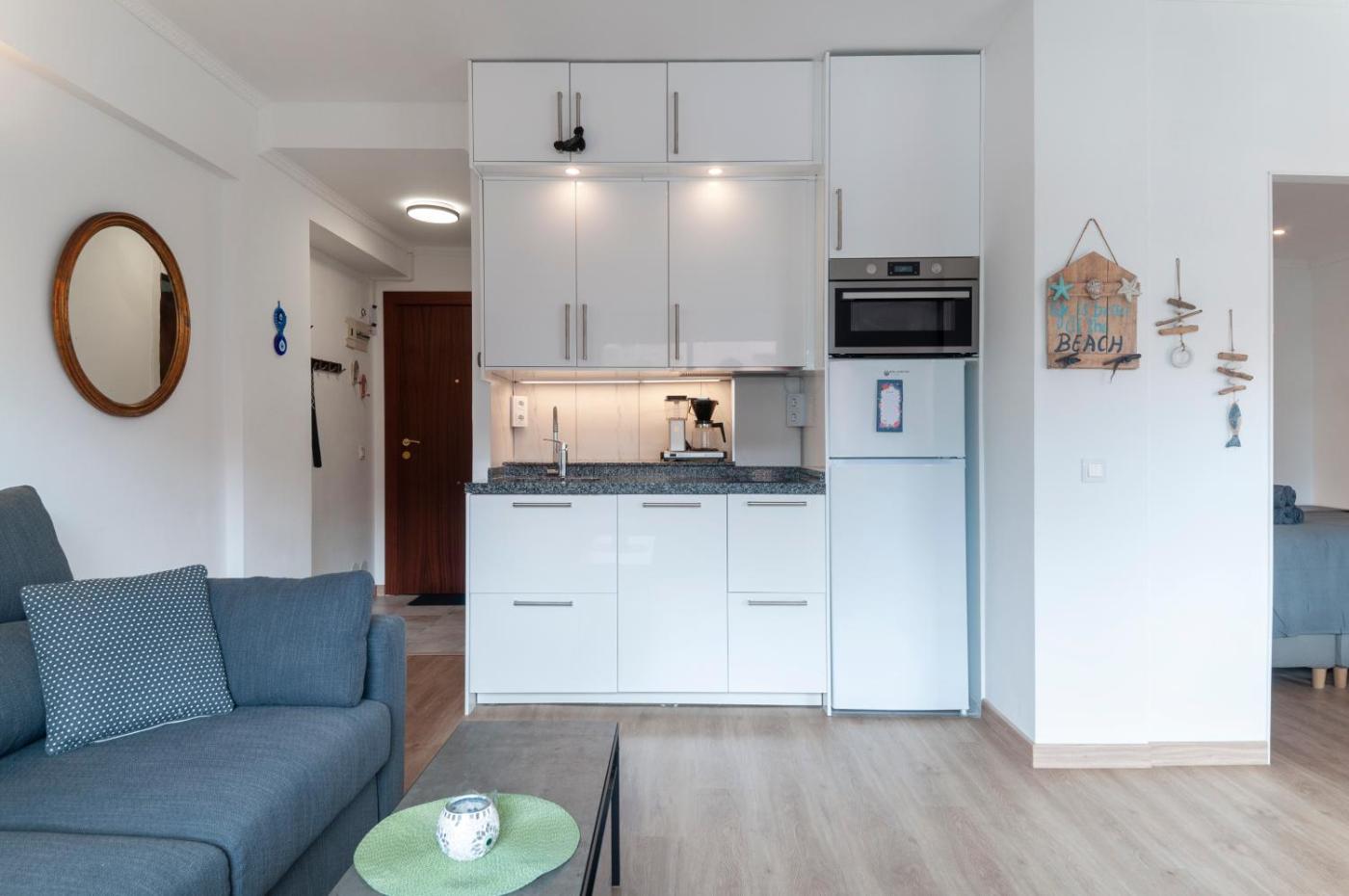 One-Bedroom Apartment. The apartments kitchen, which has a refrigerator and a microwave, is available for cooking and storing food. The air-conditioned apartment features a flat-screen TV, a private entrance, soundproof walls, a tea and coffee maker as well as sea views. The unit has 2 beds.